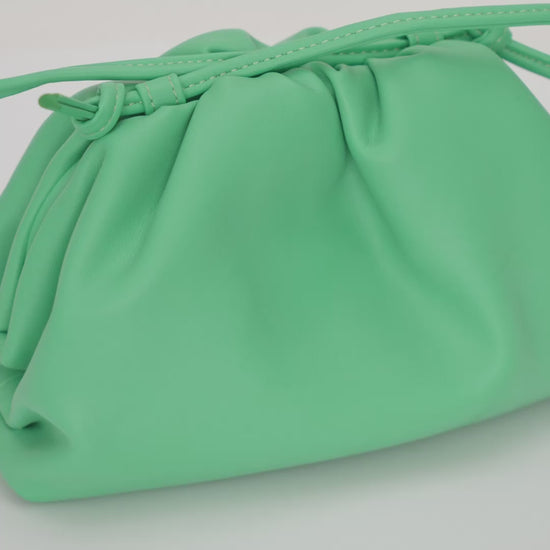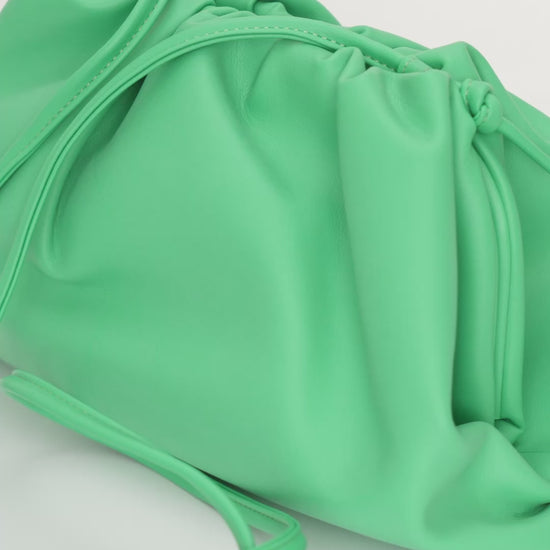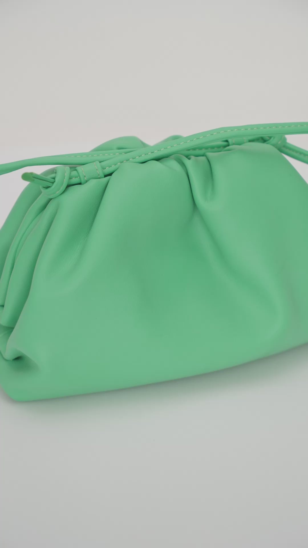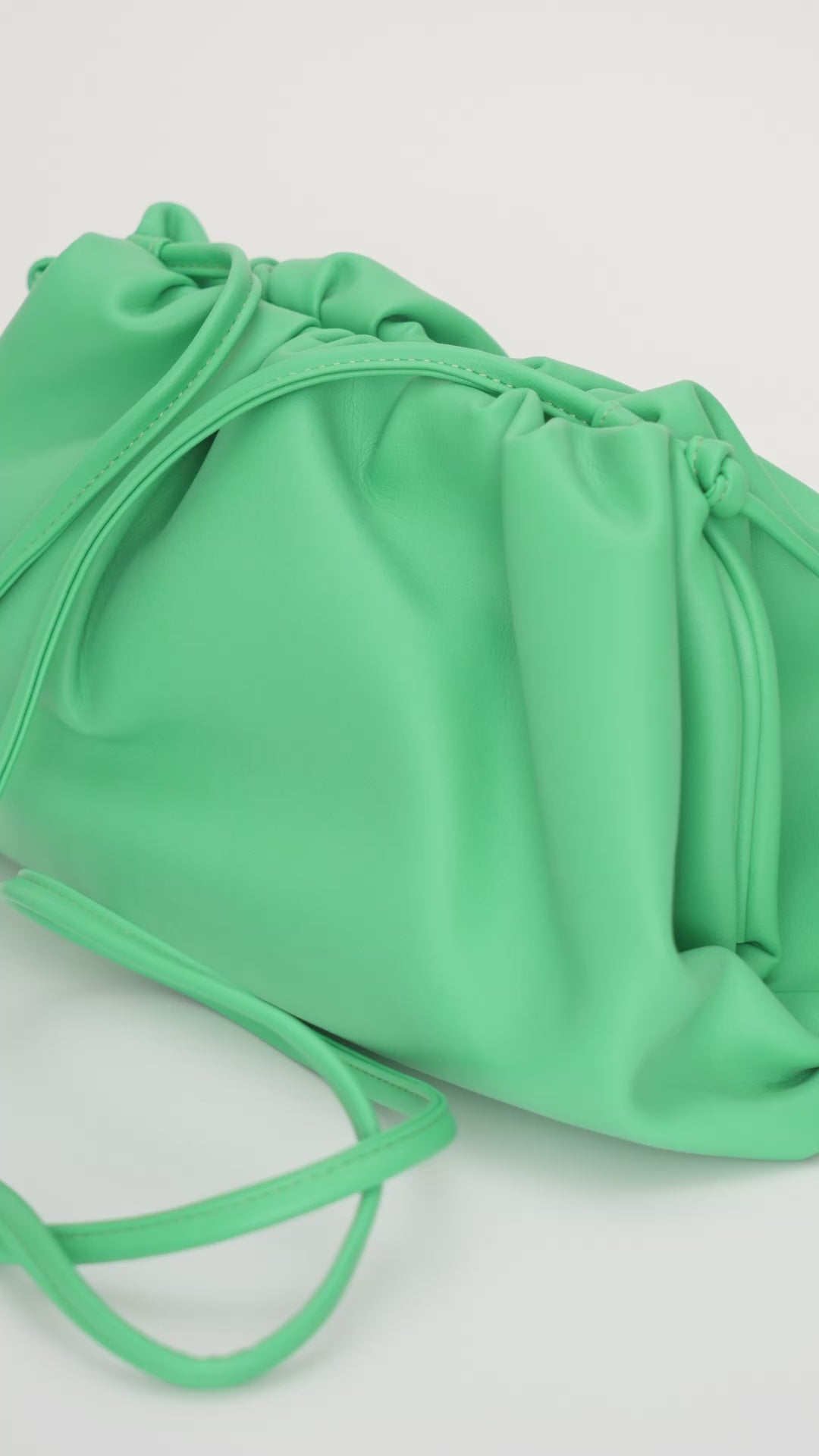 Our Apple Green jeanie clutch bag adds a little vibrance to any outfit. Embodying a minimalist look, our jeanie clutch has been crafted from soft leather and is detailed with your initials in gold. It can be worn cross body with a long strap or as a clutch bag for an evening event.