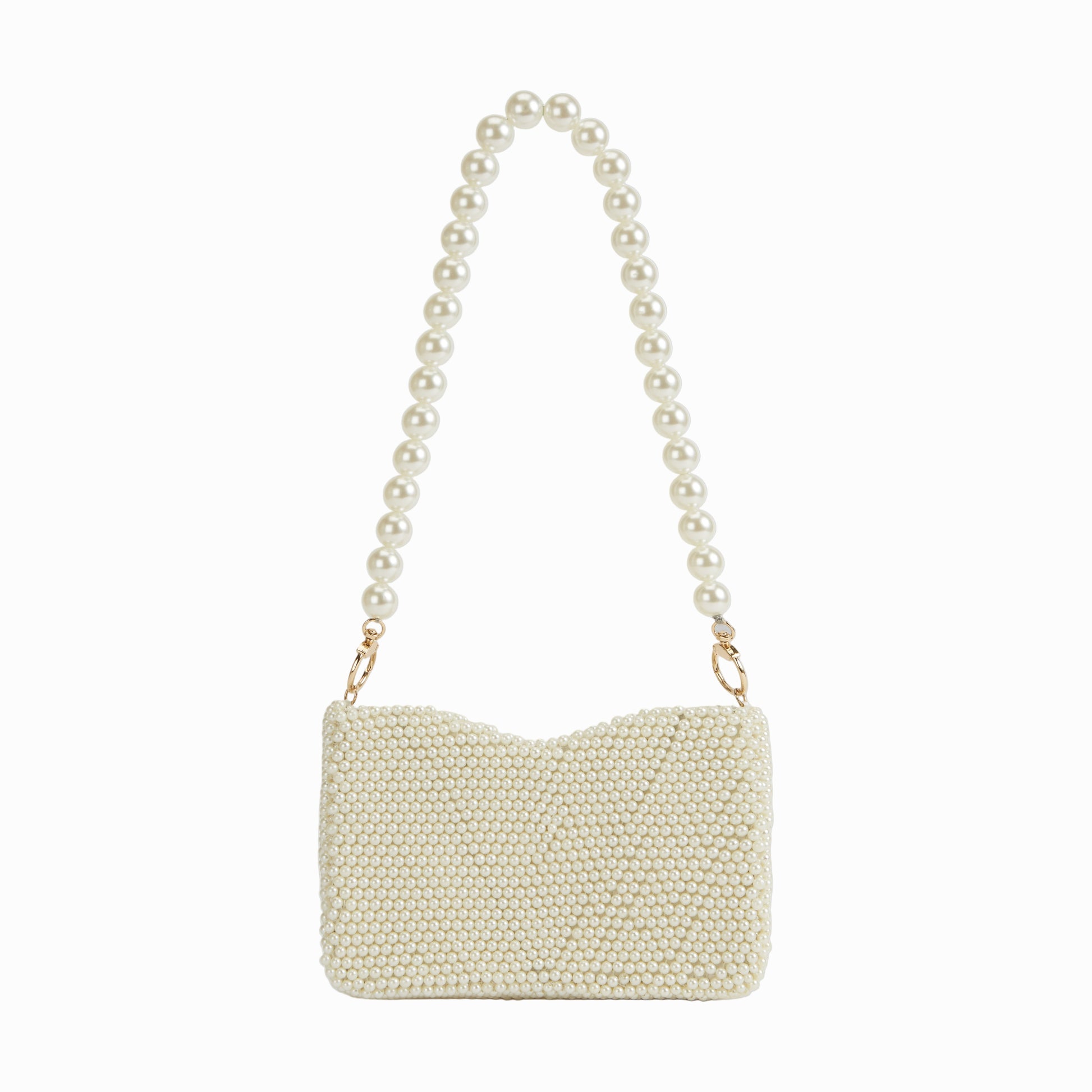 The Pearl Bag features beautifully arranged synthetic pearls for a luxurious, standout look. Its detachable shoulder strap allows for versatile styling, switching between elegant hand-held and comfortable shoulder carry. Secured with a popper closure, this piece combines timeless sophistication with practical design. Perfect for special occasions or adding a refined touch of glamour to your everyday wardrobe.